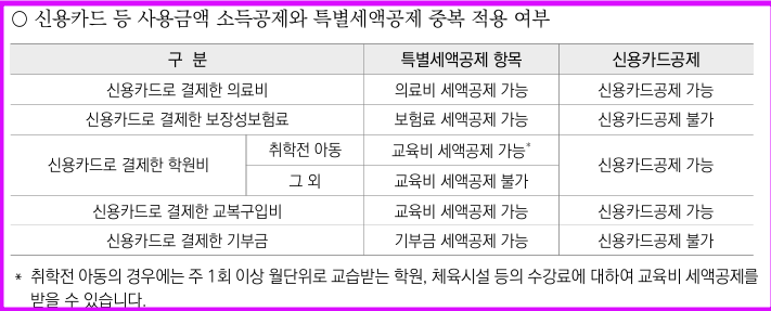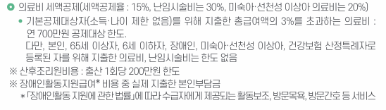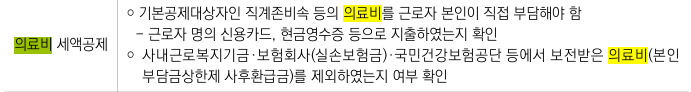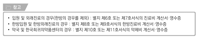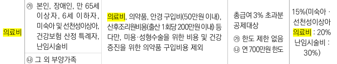 ※ 미용·성형수술을 위한 비용 및 건강증진을 위한 의약품 구입비용은 의료비공제대상에 포함하지 않음