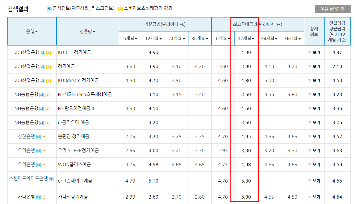 현재 금리 상관없이 가파란 인상으로 정기예금 적금이 5%를 돌파했습니다. 이자계산기를 통해 만기후에 세전/세후 수령액을 확인할 수 있습니다.
