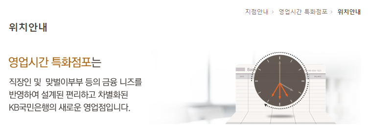 국민은행 영업시간 오전 11시~오후6시 운영 특화점포