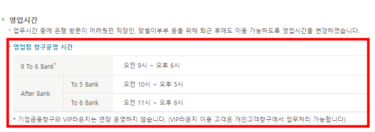 국민은행 영업시간 오전9시~오후6시 특화점포
