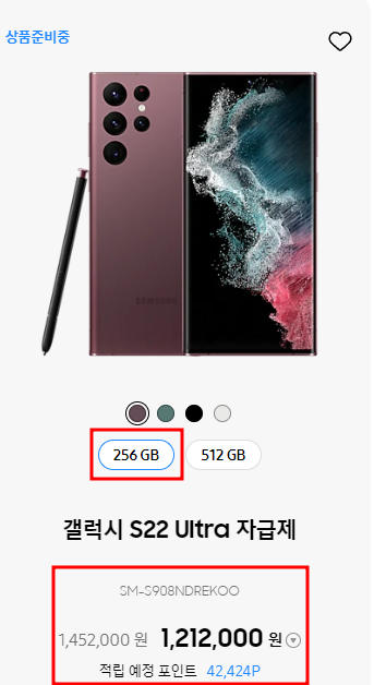 | 갤럭시 s22 울트라 256GB | 1,452,000 → 1,212,000 |