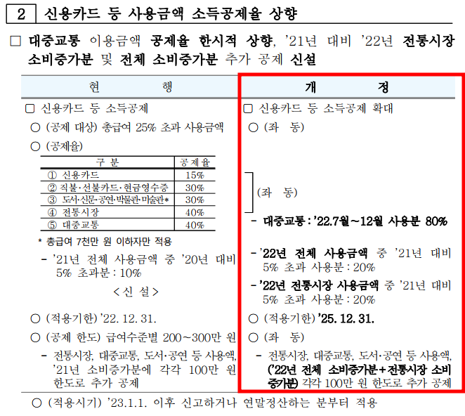 1. 22년 7월 ~ 12월 대중교통 이용금액 공제율 80% 상향 조정