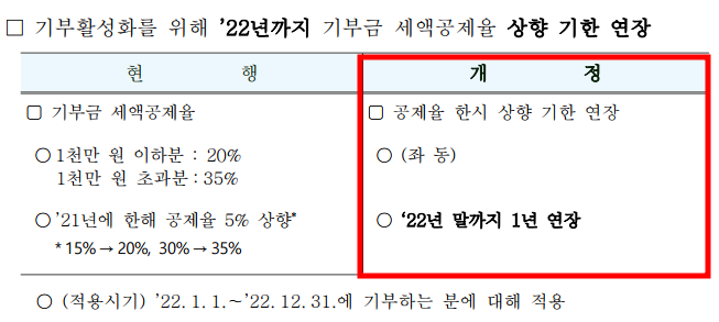 2022년 지출한 기부금 1천만 원 이하 → 20% 공제, 1천만 원 초과 → 35% 세액공제