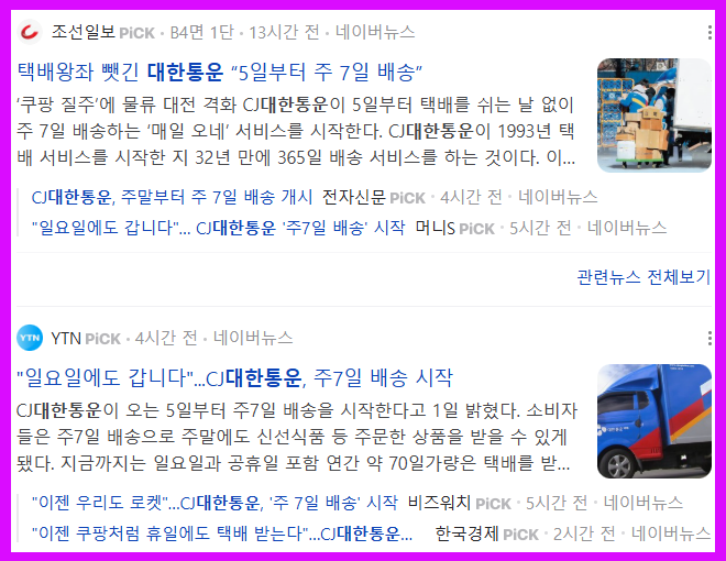대한통운 CJ 택배가 1월 5일부터 휴일 상관없이 배송 서비스를 본격 시작을 알리며, 대한통운 주7일 배송 서비스에 대해 긍정적/부정적 반응이 혼재되어 있습니다.