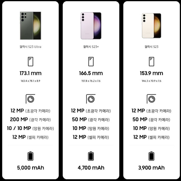 갤럭시 s23 카메라 2억 화소 기능 스펙 디자인